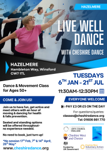 Please get in touch if any questions,  call 01606 861770 or email us at classes@cheshiredance.org.