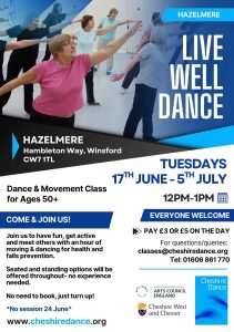 Please get in touch if any questions,  call 01606 861770 or email us at classes@cheshiredance.org.